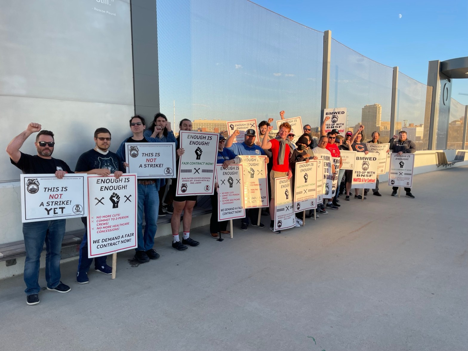 Workers at the seven biggest freight railroads nationwide (known as “Class 1” railroads) have not had a contract update since the last agreement, whose last wage increase was in 2019. We have worked through pandemic, inflation, and skyrocketing costs of living with no wage increases or improvements to working conditions and quality of life. We work on call, 24/7, long shifts, with little time off or vacation and no sick time. Harsh attendance policies are universal, punishing workers for calling out even a couple of times. The total number of “Class 1” railroad workers have been cut approximately 40% in the last 10 years as the companies have slashed jobs in pursuit of increased profit.