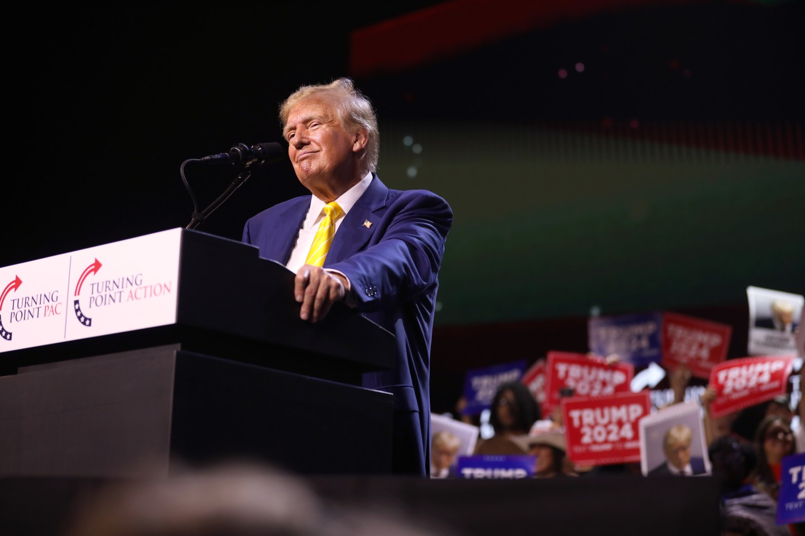 Photo by Gage Skidmore. Former President of the United States Donald Trump speaking with attendees at a “Chase the Vote” rally at Dream City Church in Phoenix, Arizona on June 6, 2024. Via Flickr (CC BY-SA 2.0)
