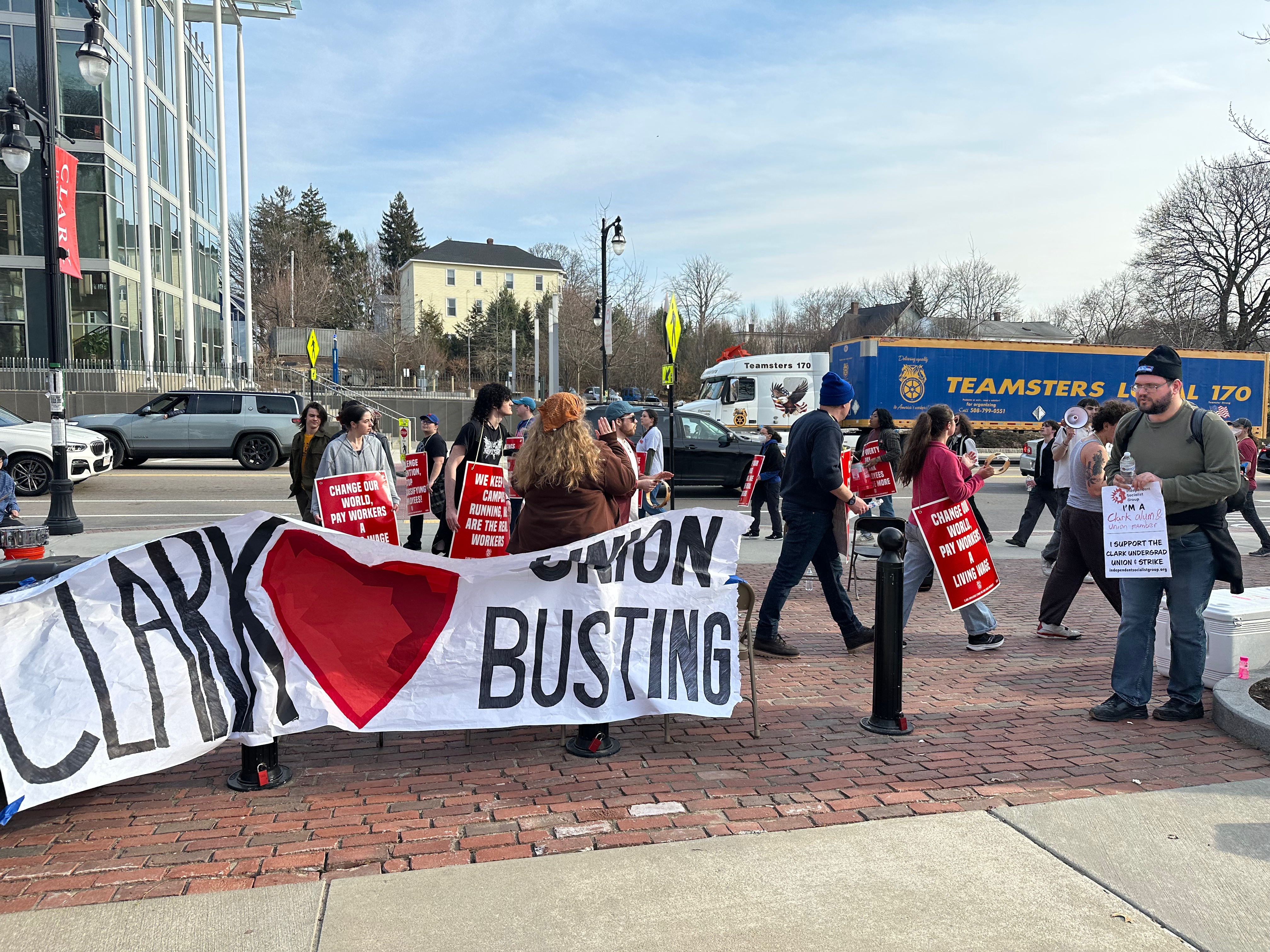 In 2022, Clark graduate workers organized with Teamsters Local 170, winning a union election and striking for five days to secure a first contract. In January 2025, the Clark undergrad effort to also join Local 170 was announced. While unions have had success organizing workers on college campuses, like faculty, dining hall workers, facilities, clerical workers, and graduate workers, organizing undergraduate workers has been much more difficult.