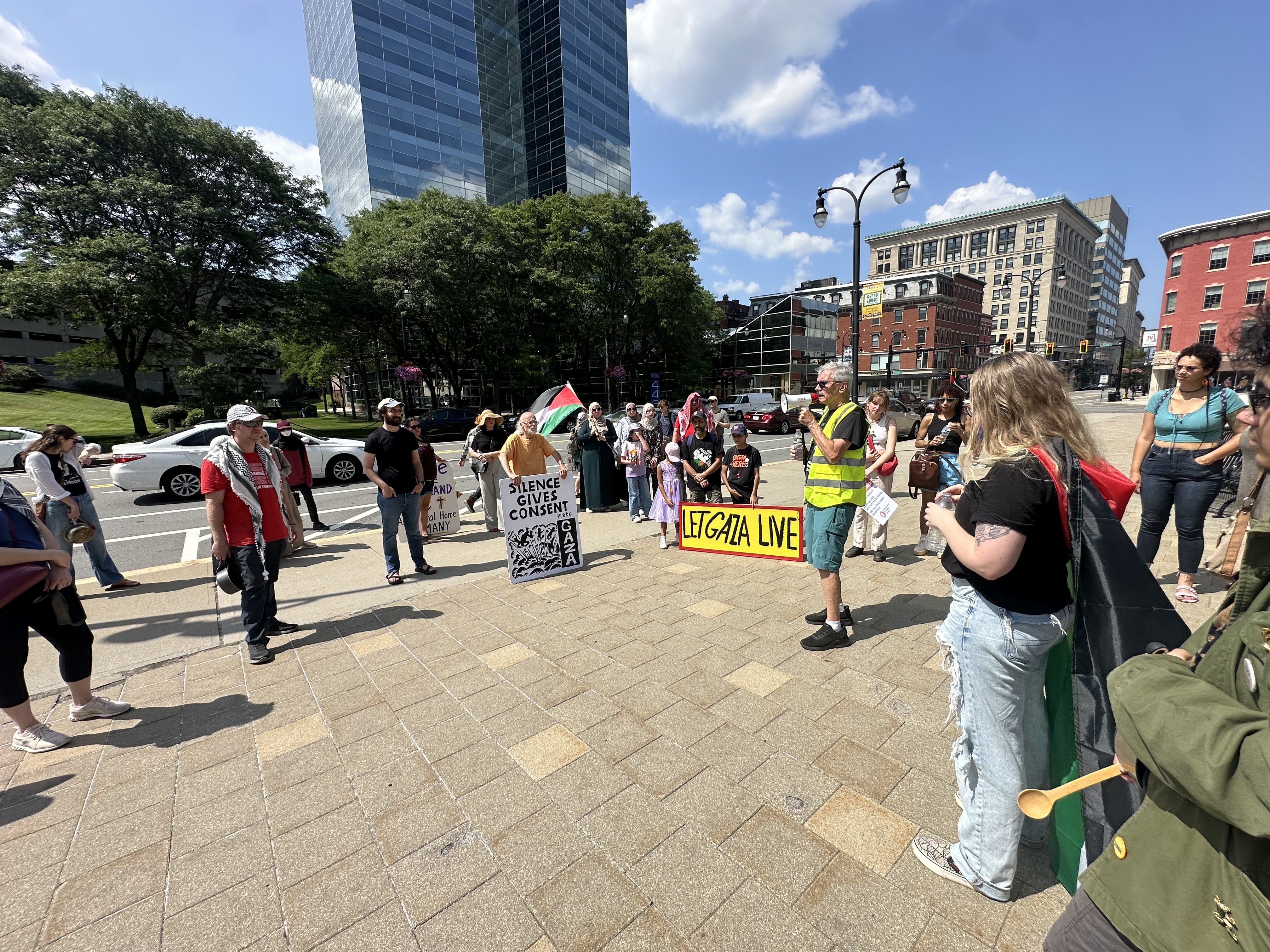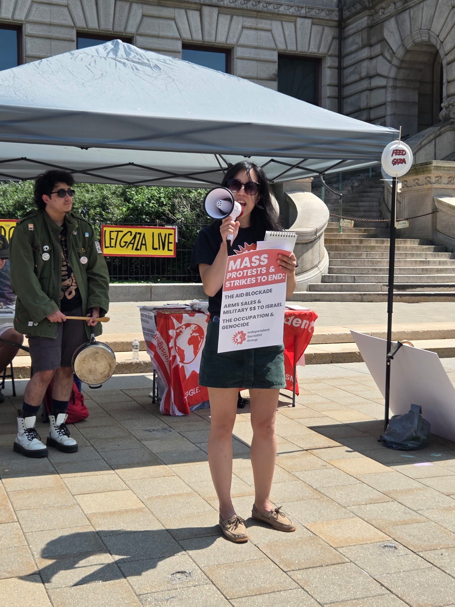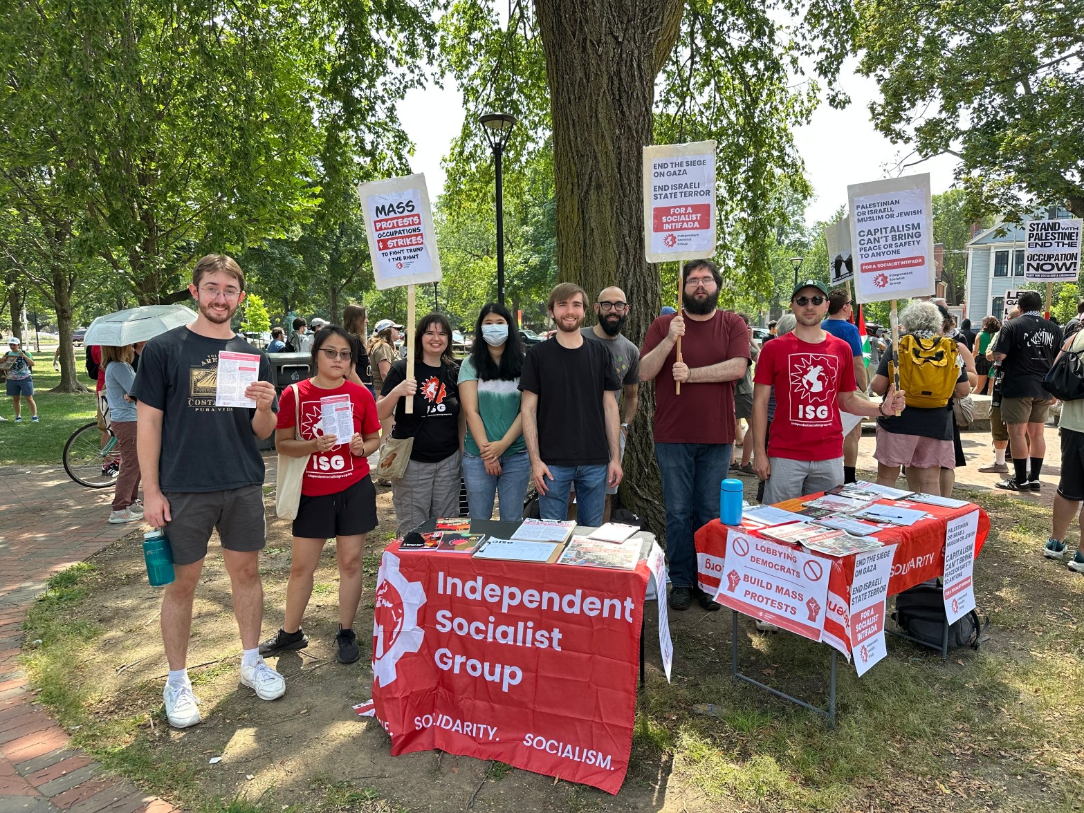 Members of the Independent Socialist Group joining the nationwide Rise Up for Gaza protests in Worcester, MA and Cambridge, MA (August 9 & 10, 2025)