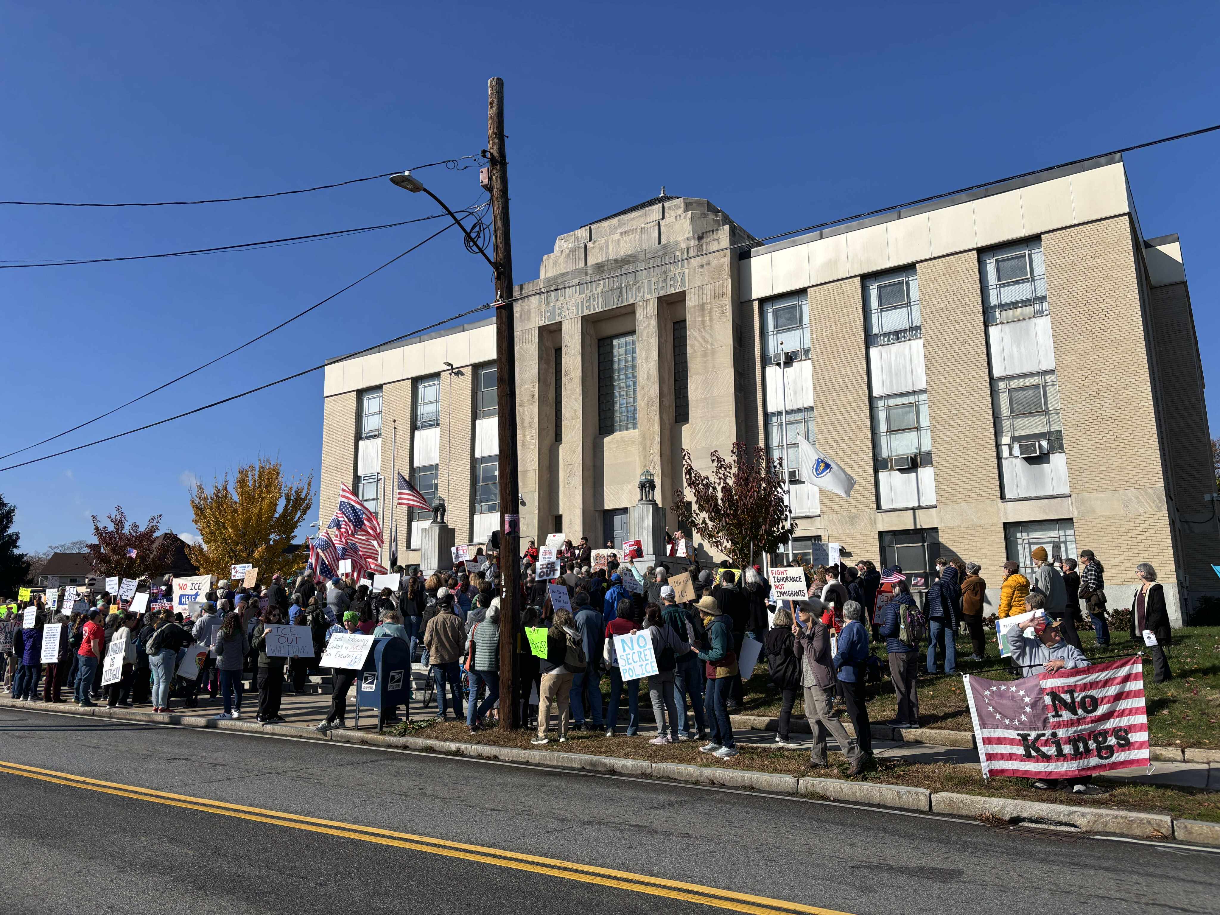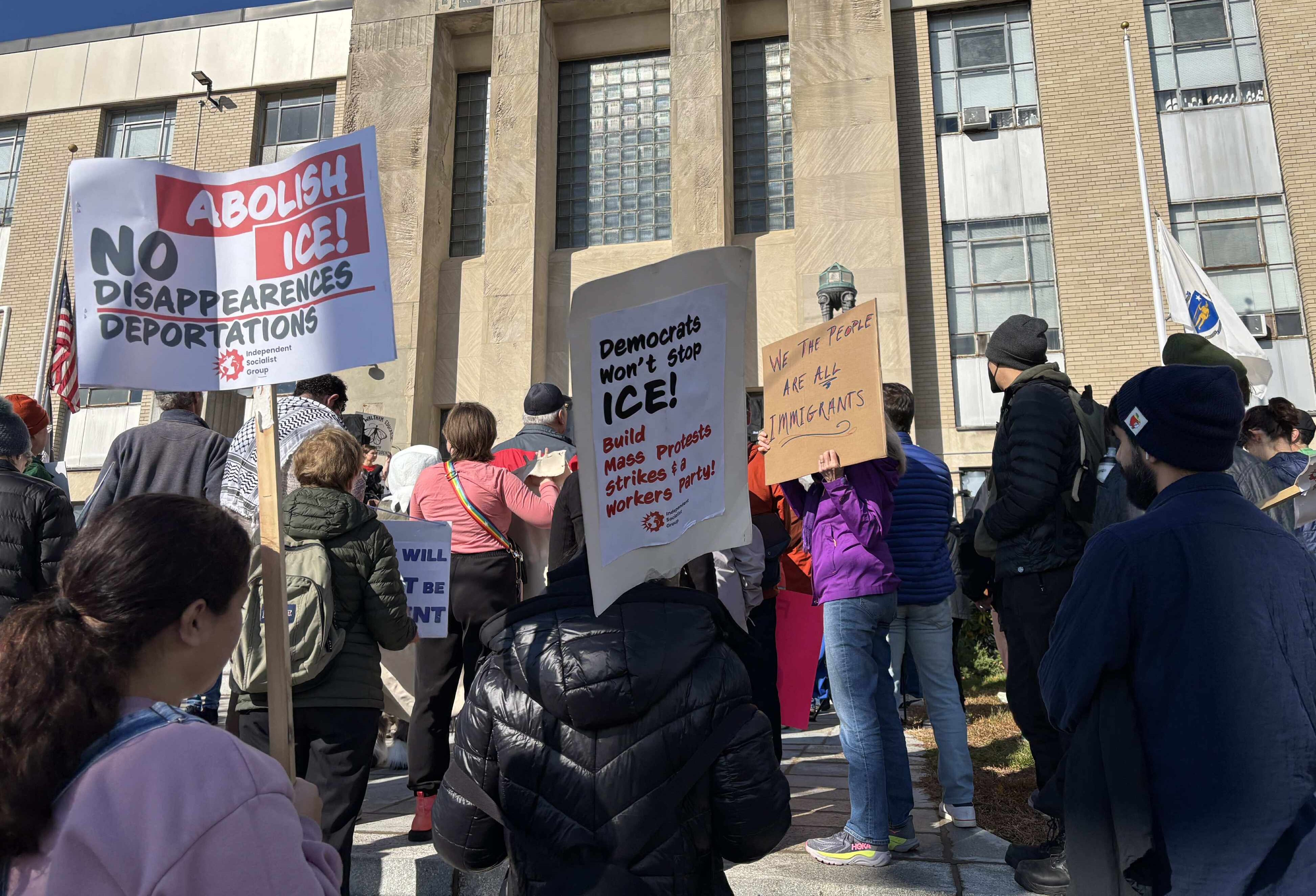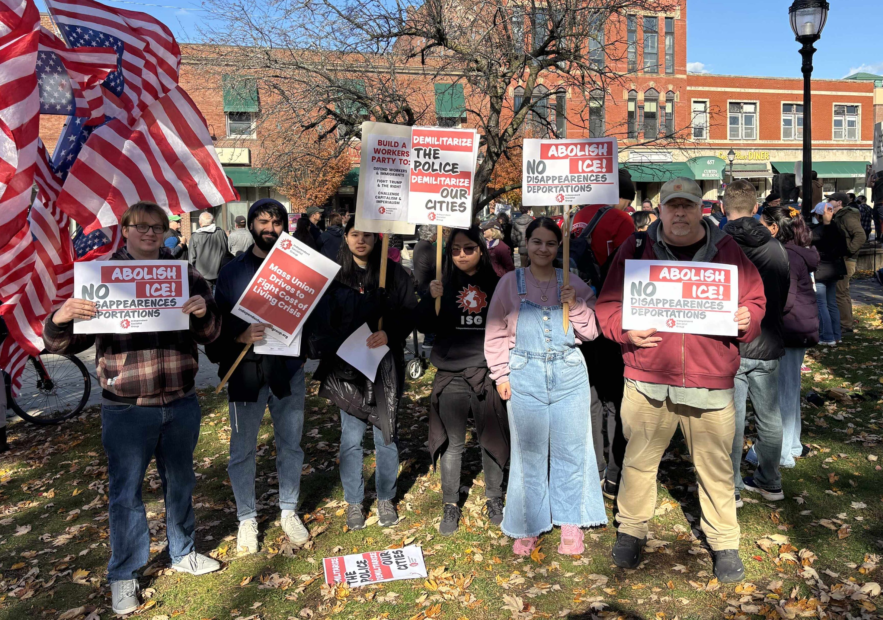 Independent Socialist Group attending an anti-ICE protest in Waltham, MA (11/8/2025)